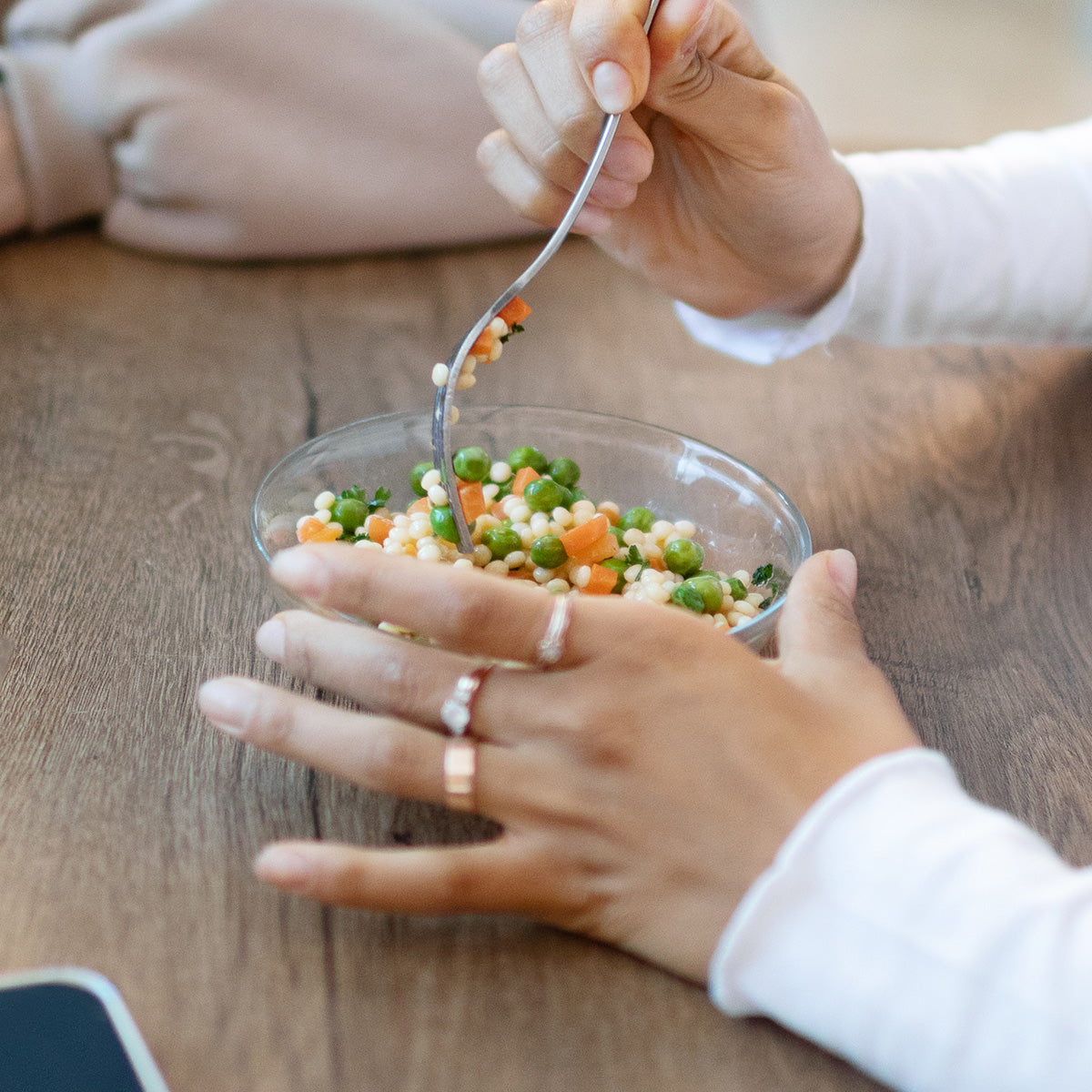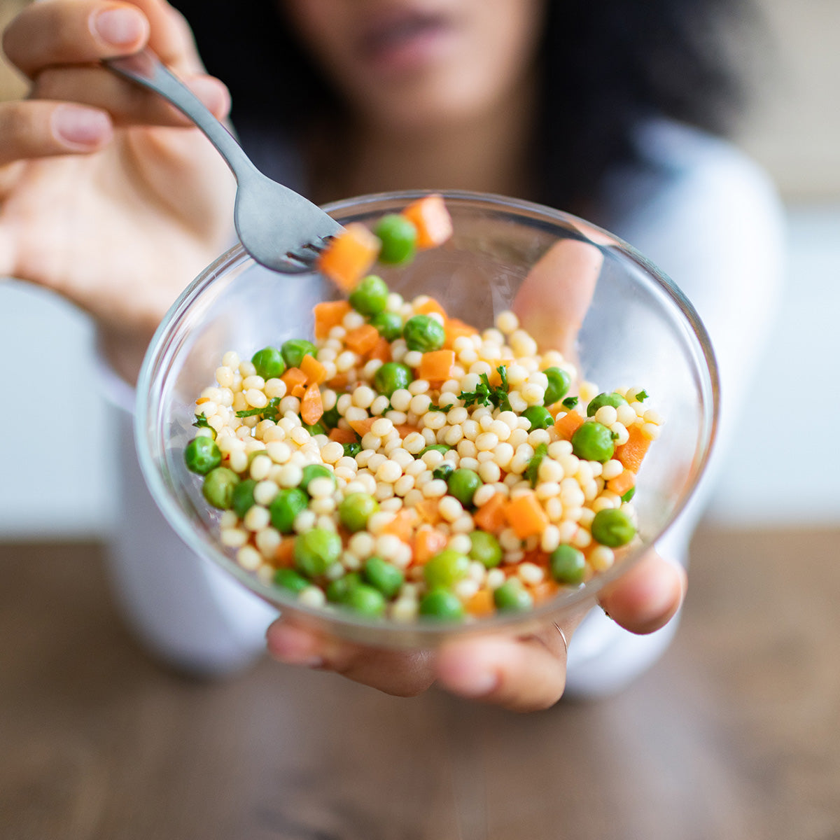Our recipe features green peas, diced carrots, morrocan couscous, lemon vinegar and a mix of spices, making it a perfect dish that is high in minerals, vitamins and fiber. Couscous has been an inseparable part of Mediterranean diet for centuries. Enjoyed both cold and warm this traditional low calorie salad will compliment any dish — whether it is poultry, fish or meat!
