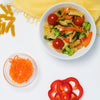 Rotini Pasta, Broccoli, Carrot, Red Bell Pepper, Green Bell Pepper, Cherry Tomato, Yellow Squash, Zucchini, Green Pea, Sunflower Oil, Salt, Black Pepper, Garlic, Lemon juice, Cayenne Pepper
