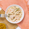 This fantastic mix of pasta and large grade A shrimp has a rich taste, presents a colorful palette with the finest carrots, green and red bell peppers, gently mixed with Zina’s unique mayonnaise based dressing. Rotini shrimp salad is an excellent main dish, and our customers enjoy it both warmed and chilled.
